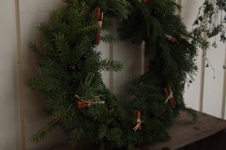 Äidin tekemä jouluinen kranssi.