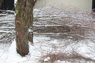 Pihalta päätettiin kaataa kaksi hopeapajua ja niissähän hommaa riittää.