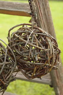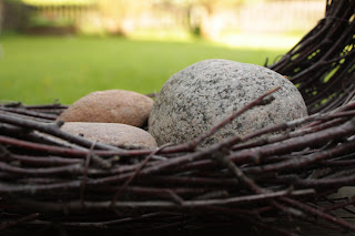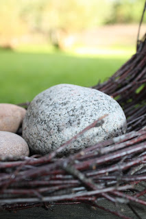Risuinnostus on taas nostanut päätään. Kokeilin tehdä ilman ohjeita koivunrisuista lintua, mutta lopputulos ei oikein tyydyttänyt. Niinpä vetäisin linnun pyrstön ja pään yhteen. Syntyikin ihan kiva "kori" kiville. Käväisin torstaina kirjastossa ja löysin sattumalta hienon risukirjan: Tarja Heikkilän Risuja ja rautalankaa. www.risusta.fi on hänen nettisivunsa, tarvii kävästä kattelemassa niitäkin. Kirjassa on paljon upeita kuvia ja muutamia sellasia risuvinkkejä joita on ihan pakko kokeilla. Amppeleita väsäilin pari viikonloppuna ja kirjaimia tehtiin työkaverin kanssa työpaikan oveen. Kirjaimista tuli kyllä tosi kivoja. Amppeleista en oo niinkään varma :)