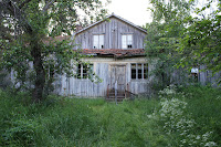 Tässä on aarreaittani kaikessa komeudessaan. Tosiaan aivan romahtamispisteessa koko rakennus. Juuri uskalsi vielä mennä sisään, mutta katto on paikoin (kuten tuvassa) jo niin romahtanut, että päivä paistaa sisään. Tosi paljon on kuitenkin talovanhuksesta löytynyt säilytettävää, esineitä ja huonekaluja, joaka ovat saaneet uuden elämän. Ne ovat aarteitani ja niistä en luopuisi.