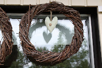 Vihreä sydämisen veimme juhannuksena kyläilypaikkaamme tuliaisiksi. Ruusukranssi taas annettiin mieheni mummille syntymäpäivälahjaksi. Toista aivan samanlaista ei yleensä inspiroi tehdä vaan mieluummin aina keksii jotakin uutta.