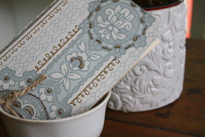 Tällainen kortti syntyi tapettimallien innoittamana. Tekis mieli tehdä lisää erisävyisinä. Katsotaan saanko aikaiseksi! Yleensä tykkään maalata korttiin jonkun kuvan taustan sävyihin sopivana, mutta toki tällai tulee vielä yhteensopivampi jotenkin, eikä ole epäonnistumisen riskiä niin paljon, kuten jos yrittää maalata jotakin kuvaa. Jos saan tehtyä lisää kortteja niin pistän uusia kuvia tähän.