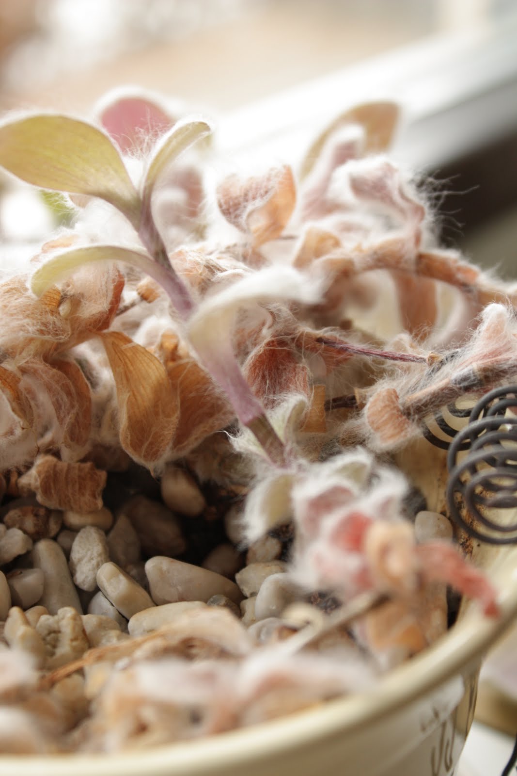Viherkasvini joka toisaalta näyttää kärsineeltä ja toisaalta aivan ihanalta nukkaisinen lehtineen, joissa näkyy niin paljon kivoja sävyjä vihreää, vaaleanpunaista, ruskeaa, lilaa ym. Jos tähän luetteloon lisäisi vielä luonnonvalkoisen ja harmaan niin saisi aika kattavasti ne värit, joista pidän niin pukeutumisessa kuin sisustuksessakin. Yleensäkin kaikki hiukankin pehmennetyt sävyt ovat kivoja oli väri sitten mikä hyvänsä oikeastaan. Tätä kuvaa hyvin se, kun kerroin lenkille mennessämme joukkuekavereille, että hankin päälläni sillä hetkellä olevan ulkoilupuvun heiltä 30v. lahjaksi saamallani lahjakortilla. Vastaukseksi tuli heti, että nii ei olla huomattukaan, kun eikö sulla oo aina päällä joku tollanen vaalee. Vanha puku on beige, jossa vaaleanpunaisia kohtia ja tämä uusi on harmaa pohjainen, jossa takissa myös hieman vaaleanpunaista kuviointia. Hyvinpä ystävät tietävät mitä tykkään käyttää. Heh! Monesti kaverien kanssa kaupoissa kierrellessä, joku sanoo et toi on ihan sun näkönen, tai et mä arvasin et tykkäät tosta, jos kehun jotakin vaatetta tai juttua. Olenkohan jotenkin helppolukuinen :)