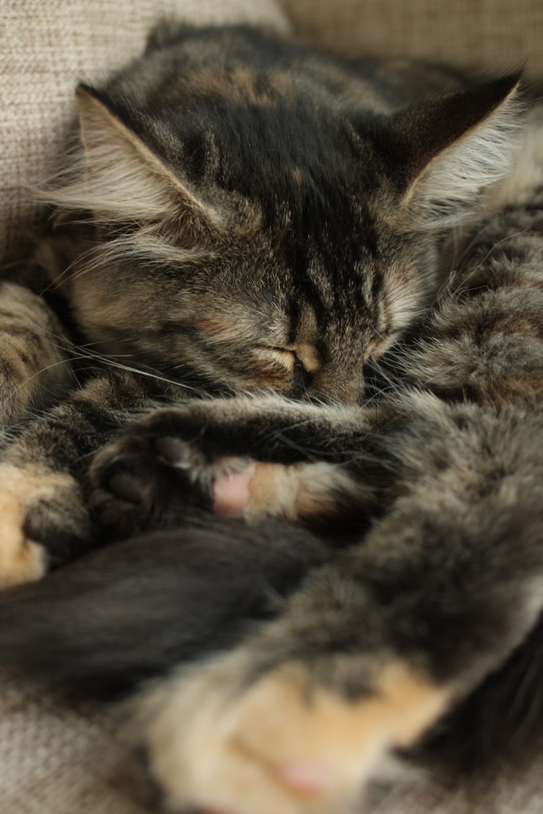 Siinä suloisesti nukkuu pentukissa Hilma. Kun uni tulee sitä ei häiritse mikään!