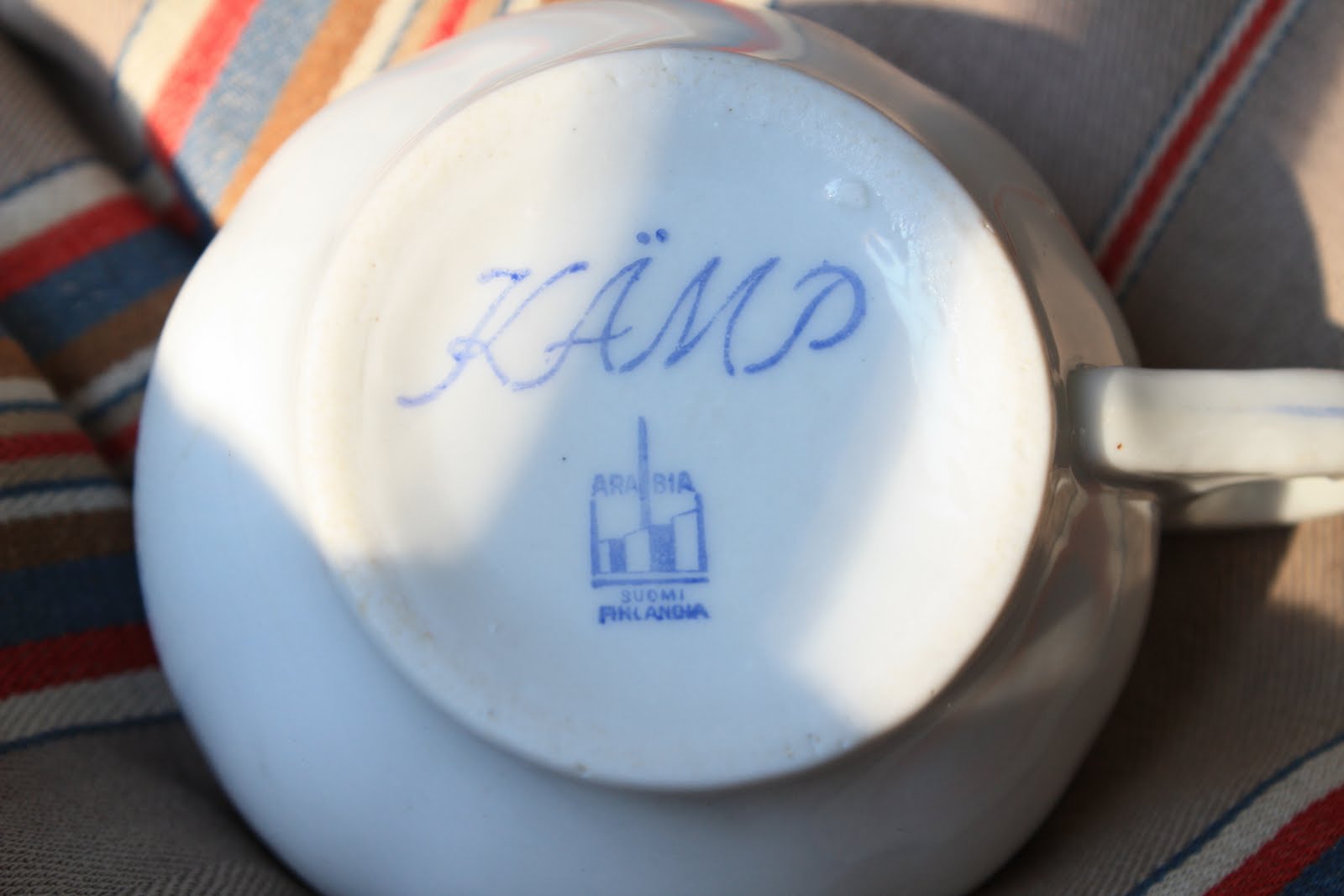 Extempore lähdettiin vielä käymään latokirppiksellä sekä kädentaitajien myyntinäyttelyssä. Ladosta löysin itselleni lypsyjakkaran ;). Marjojen poimintaa varten se tuli hankittua, on mukavampi ja tukevampi istua kuin ämpärin päällä tai maassa. Mukaan lähti myös kaksi harmaata arabian tassia ja kuvassa oleva kuppi.
