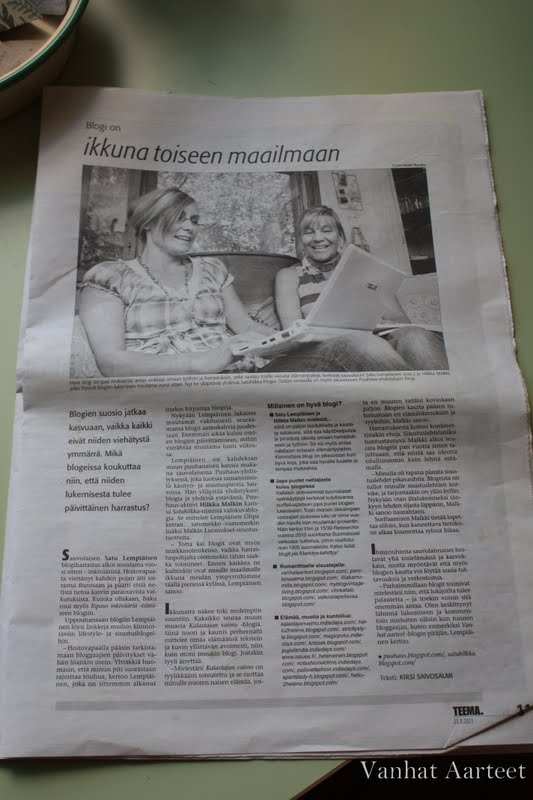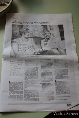 Olipa yllätys Tiistai aamuna, kun kaverilta tuli viesti, että sun Blogista on maininta Turun sanomien liitteessä. Myöhemmin päivällä jo useampi tuttu mainitsi asiasta :). Ite pääsin lukemaan lehden vasta illemmalla.