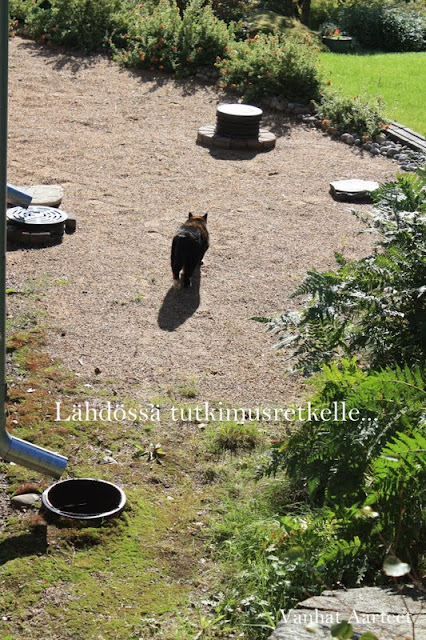 Oona, vanha neiti, valitsi rauhallisemman tien takapihan kautta. Ikä tuo järkeä, ainakin tässä tapauksessa ;).