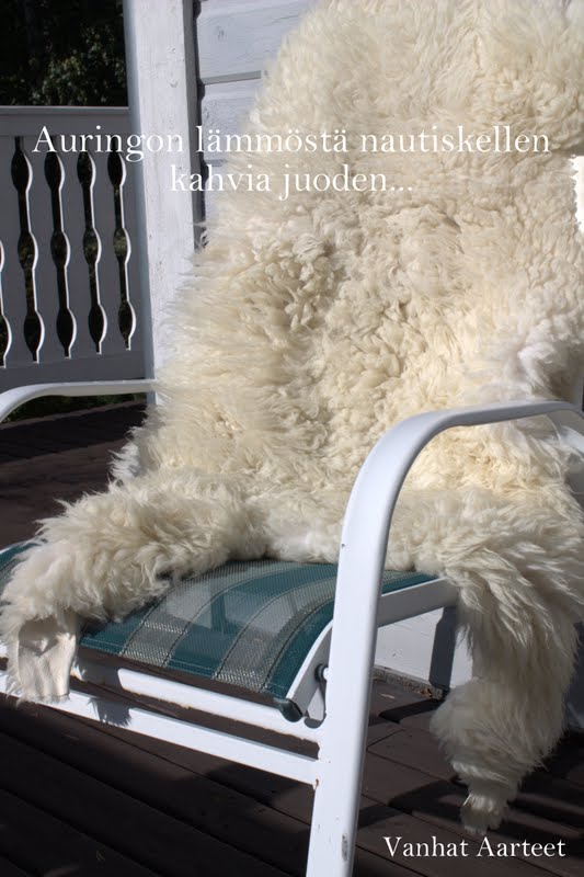 Hmmm.... Taidanpa mennä ulos aamukahville. Aamupala valmiiksi, huppari ja villasukat päälle sekä lampaantalja tuolia lämmittämään ja etuparvekkeelle.