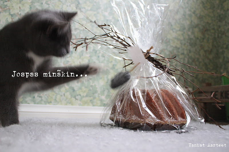 Suklaakakku kaakaojauheesta työkaverin ohjeen mukaan. NAM! Eilen leivottu ja tänään viety joulutervehdykseksi miehen mummille.