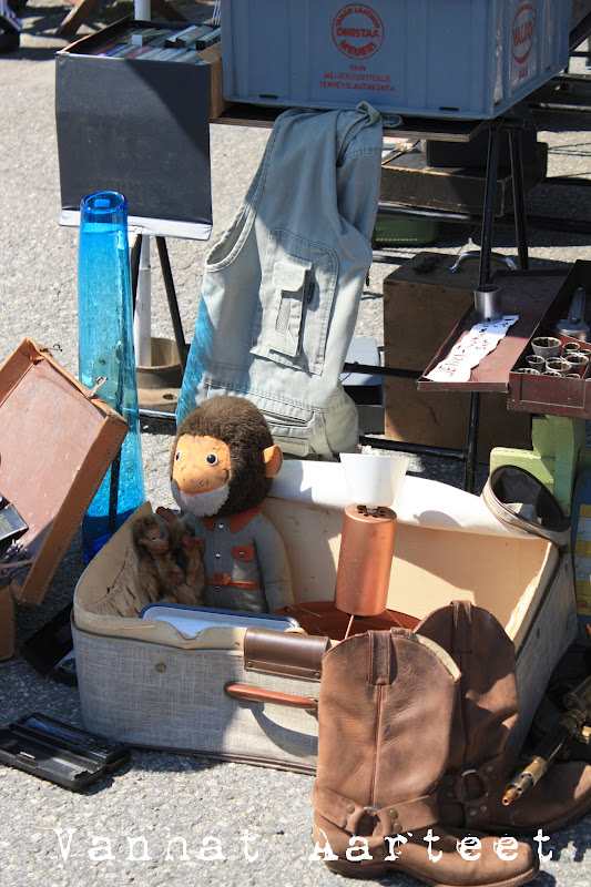 Aurinkoista sunnuntaipäivää vietettiin Kesäheikissä. Myynnissä oli kaikenlaista vanhaa ja uutta rompetta. Pakko sanoa, että jotakin tarttui mukaankin :). Vanhaa tietysti, mutta ei autoa, heh.